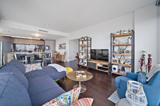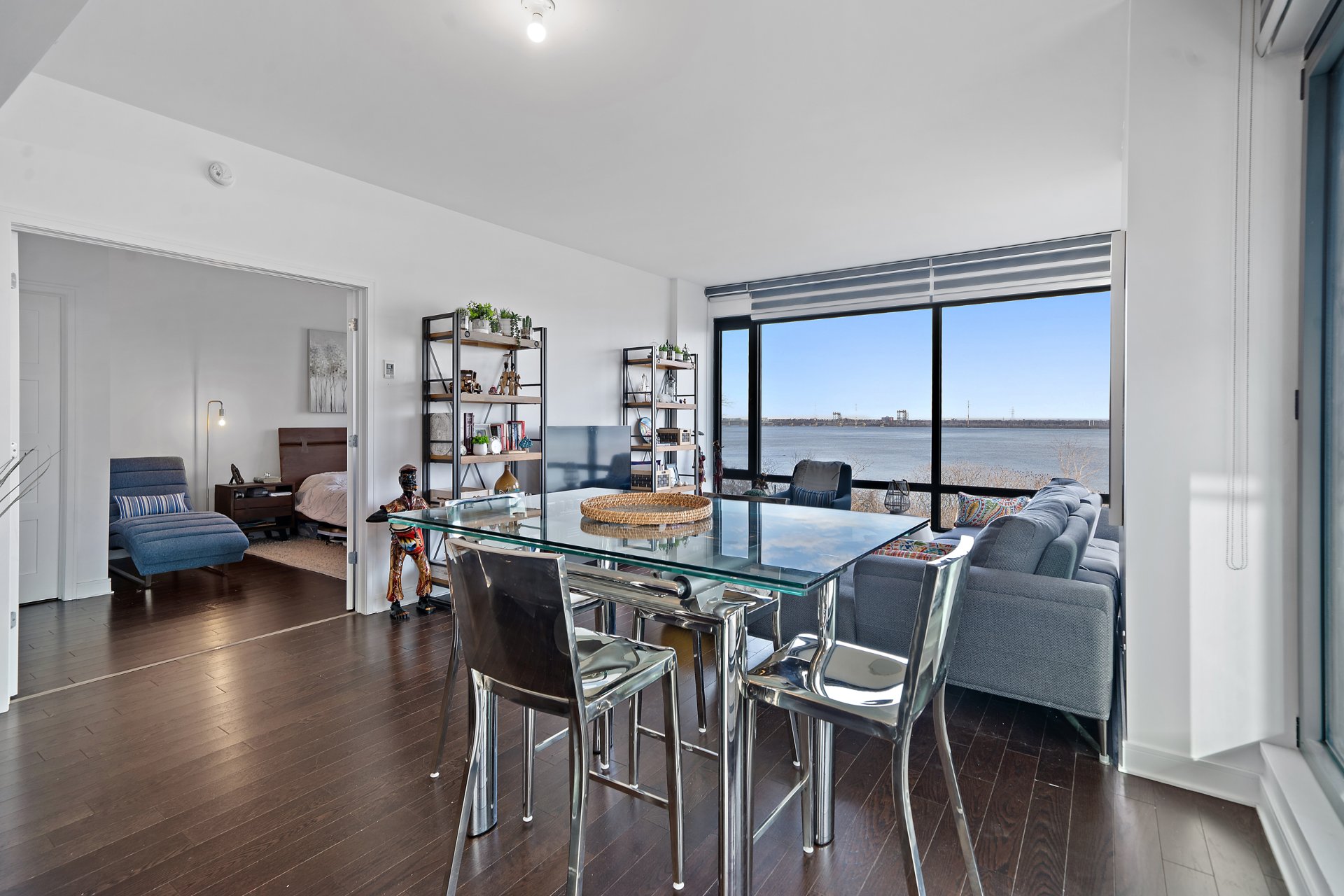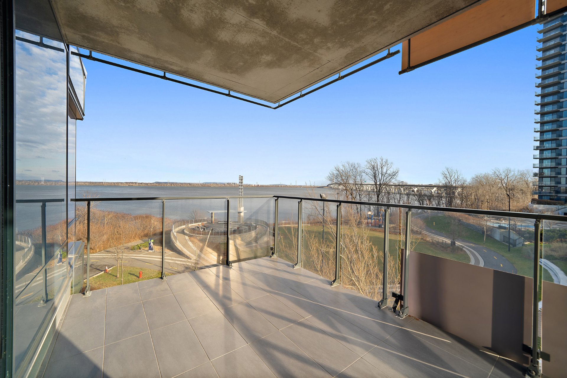 EVOLO 1 - INCLUS 2 GARAGES ! Seulement 4 min de marche du REM. Rare unité de coin de 1,092 pc incluant 2 grandes chambres et 2 salles de bains. Découvrez un panorama unique grâce à une fenestration plein pied donnant une vue directe sur le fleuve et le Pont Champlain. La disposition des pièces est maximisée et confortable. L'accès à un grand balcon donnant sur l'Esplanade et un grand espace vert est une valeur ajoutée. Inclusions: 2 garages côte-à-côte et 1 rangement. Portier, gym, piscine, suites d'invités à votre disposition. À seulement 400m du REM et 5 minutes du centre-ville. Opportunité à saisir!